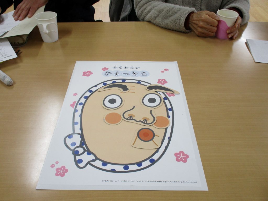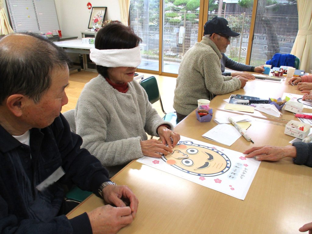 ポールヒットゲーム (室内用モルック)と福笑いをしました。福笑いは何十年ぶりかと楽しそうに挑戦をされました。みんなで会話も弾み、たくさん大笑いもして楽しい時間を過ごしました。